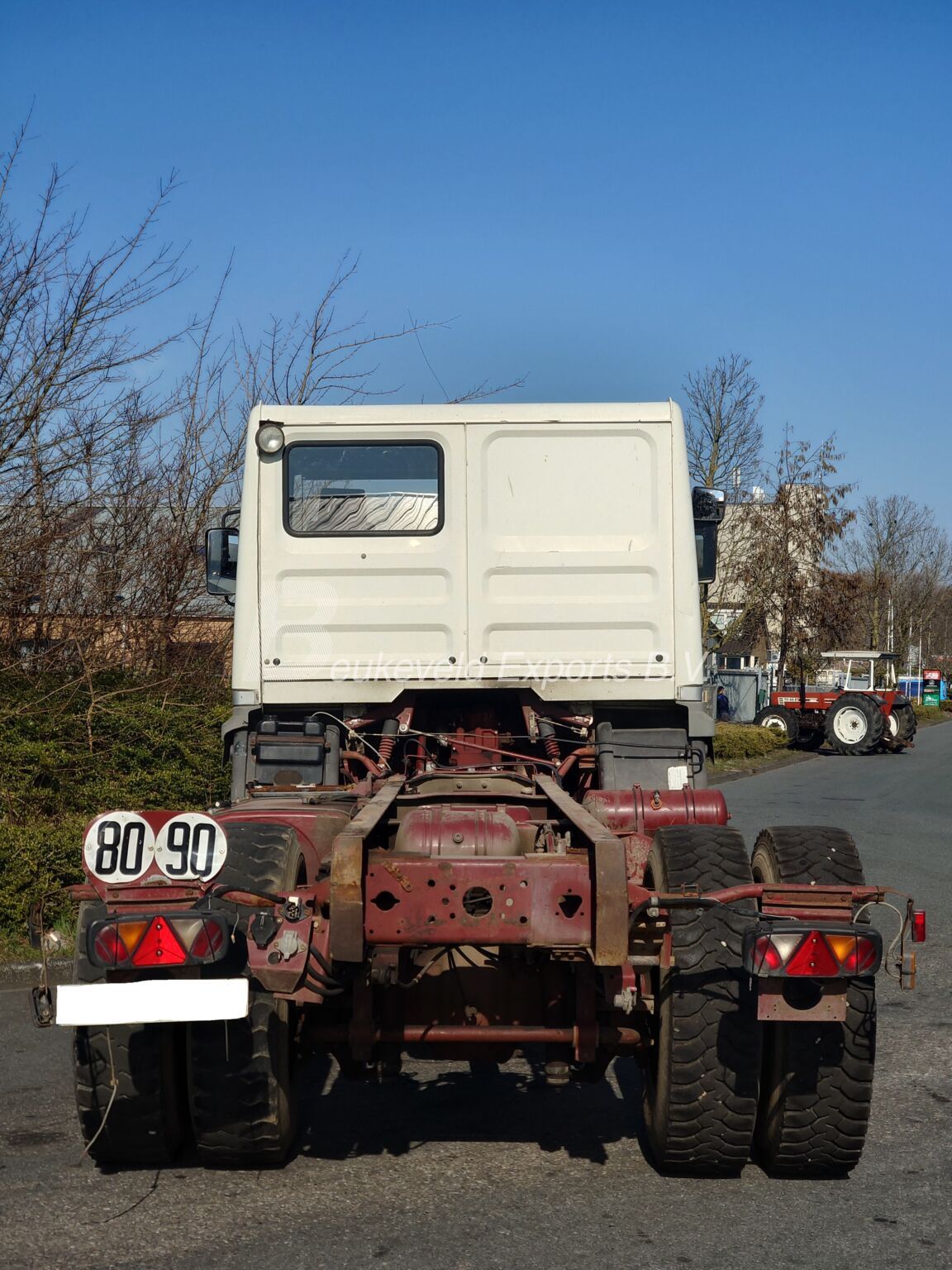 Leaf springs on both axles.